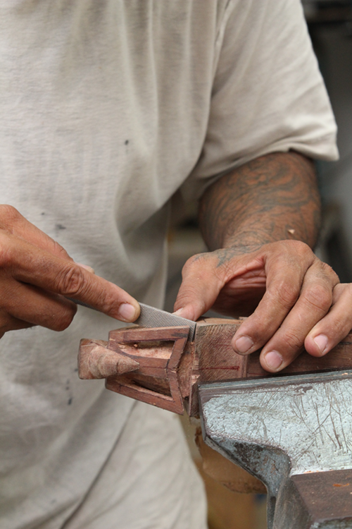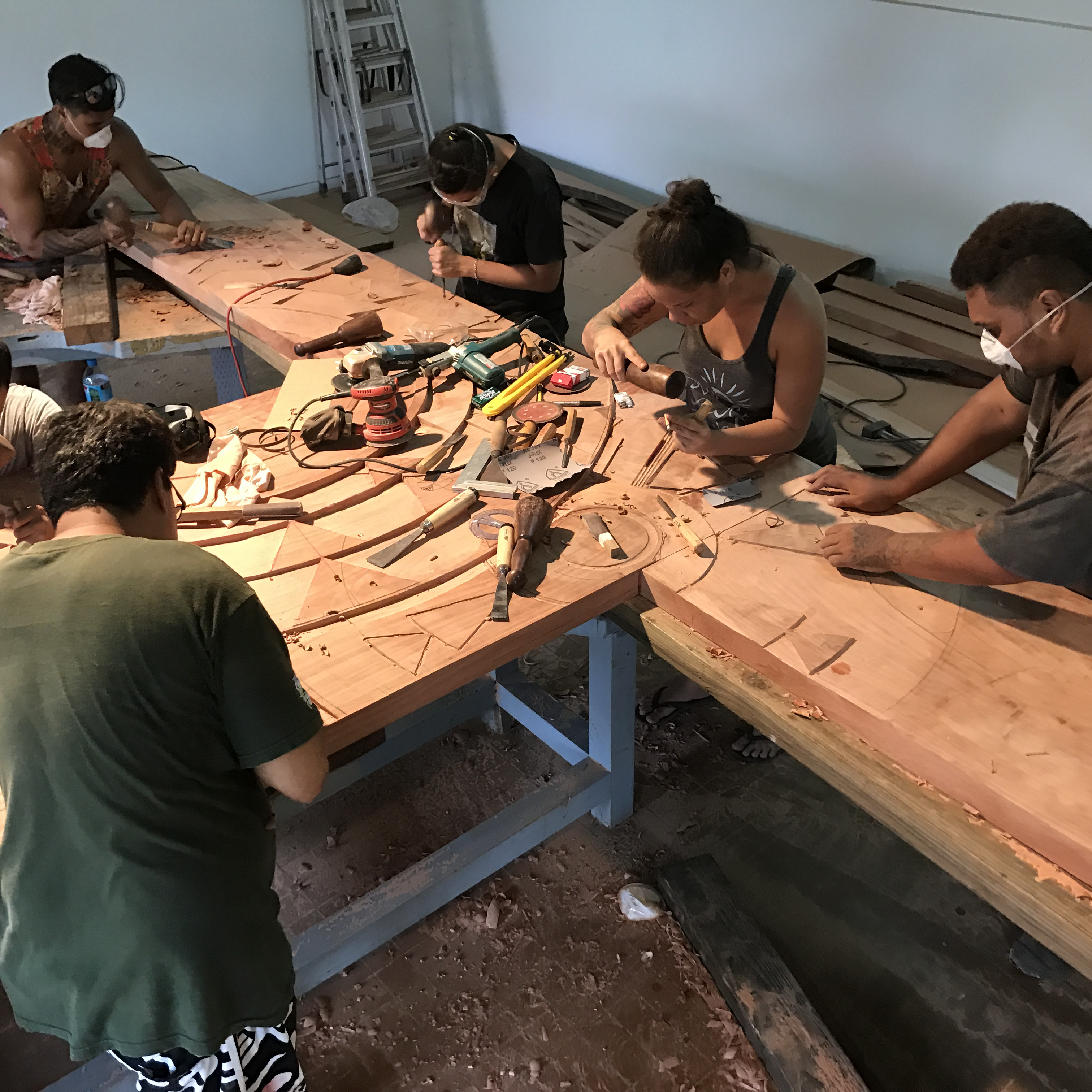 Les cours de sculpture sont assurés par des techniciennes qui maîtrisent cette matière et apportent aux élèves les moyens techniques leur permettant la compréhension des outils et des techniques en développant la capacité à faire exister des volumes en lien avec les spécificités stylistiques invoquées : Culture marquisienne “Te fenua Enata”, Culture des Tuamotu, Culture des Australes “Tuha’a Pae”, Culture des Gambier “Mangareva” et Culture des îles de la Société “Ni’a e Raro mata’i”. Ces ateliers s’orientent aussi vers des sujets plus libres ou alors vers des cultures hors de la Polynésie française, Mélanésie, Micronésie…